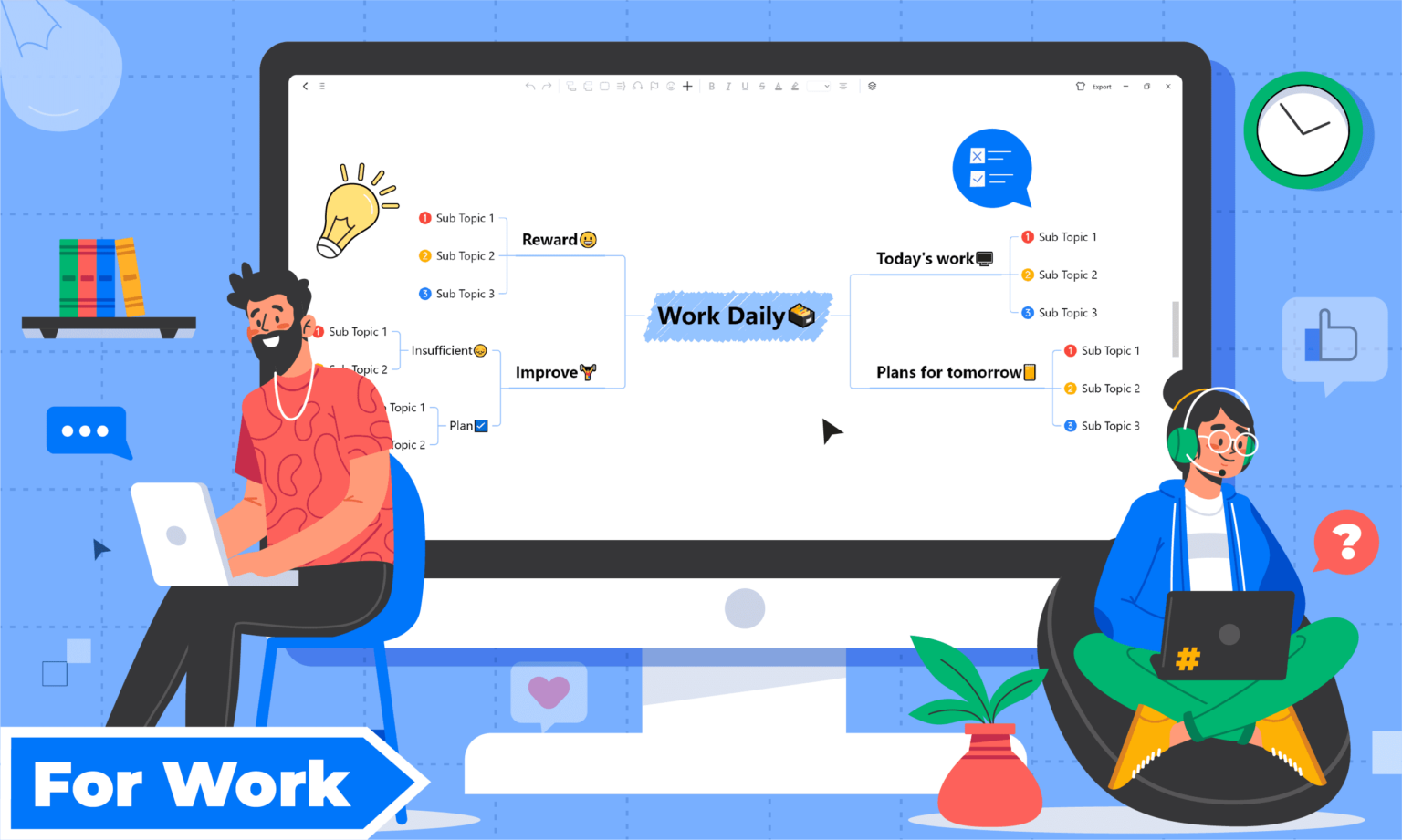 Use Nice Mind to organize and structure the new ideas that pop into your head. Unleash your creativity and generate ideas by brainstorming and using all available features!