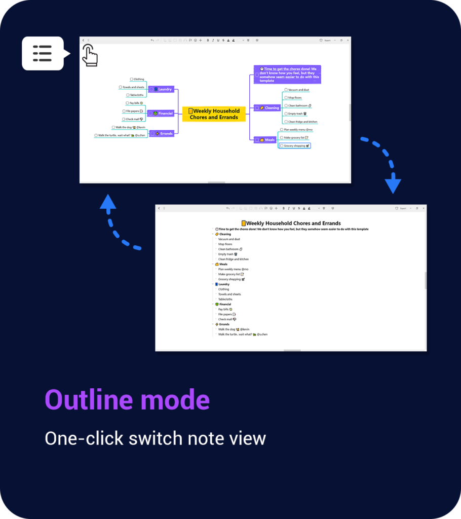 Turn any mind map into a real-time editable outline or create your outlines from scratch.